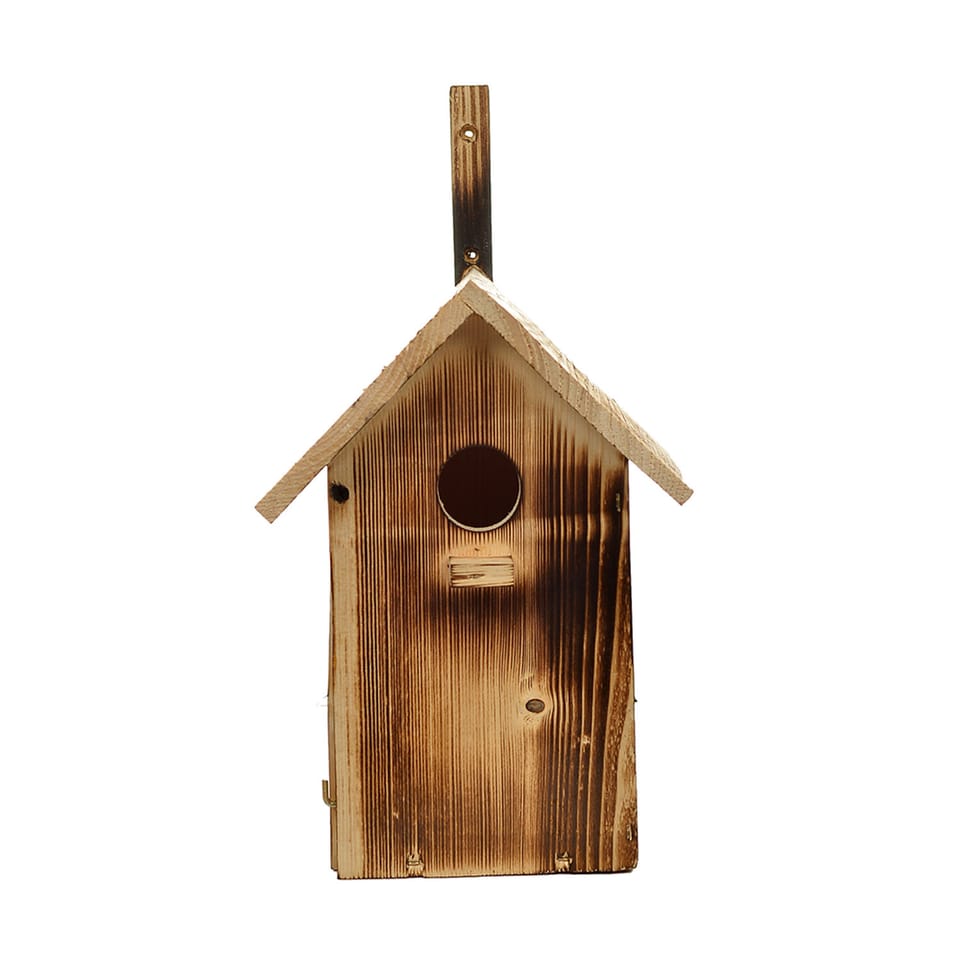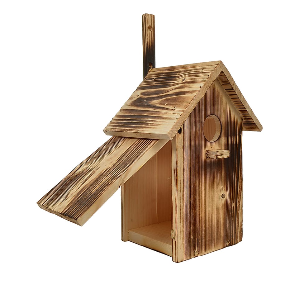 Dodatkowe pogrubienie wokół otworu wlotowego stanowi skuteczną ochronę przed drapieżnikami, a estetyczne opalanie drewna nadaje budce niepowtarzalny wygląd, który doskonale komponuje się z naturalnym otoczeniem. Idealny wybór dla miłośników przyrody!