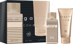 Bugatti Iconiq Gold zestaw prezentowy zawiera wodę toaletową 100 ml i żel pod prysznic 200 ml.