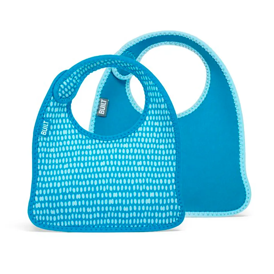 BUILT Mess Mate - 2 śliniaki dla dzieci Dribble Dots Blue