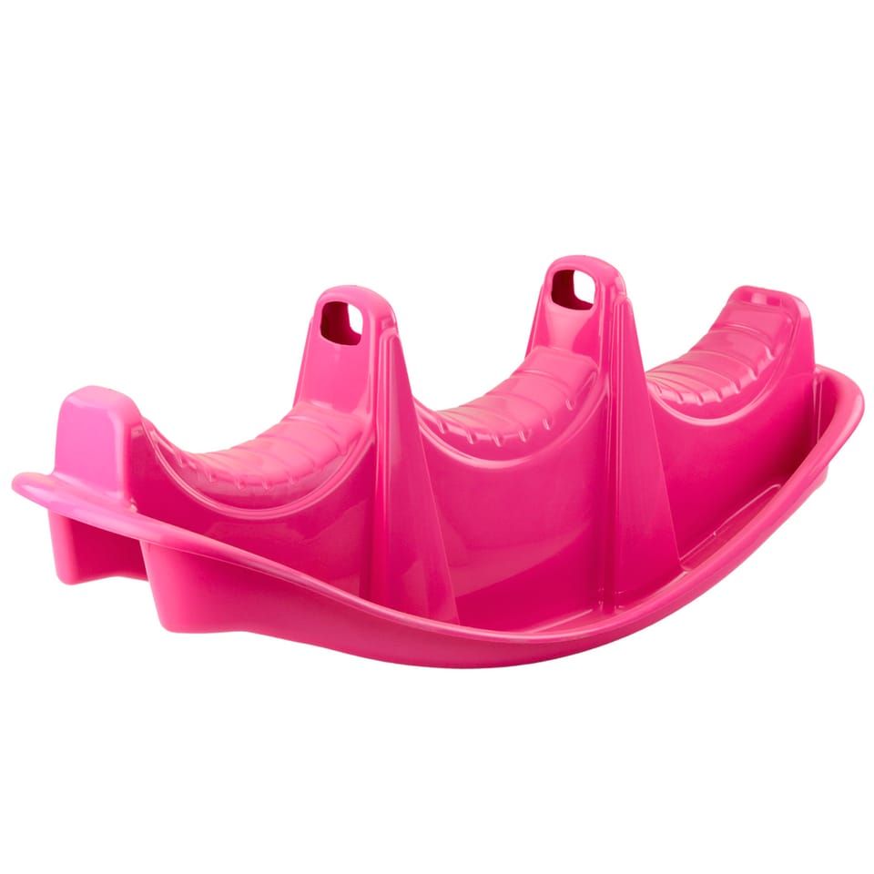 Wykonany z wytrzymałego tworzywa sztucznego, bujak wyposażony jest w trzy ergonomicznie wyprofilowane siedziska oraz wygodne uchwyty do trzymania. Zaokrąglone krawędzie i solidna konstrukcja zapewniają bezpieczeństwo podczas bujania. Radosny, różowy kolor przyciąga uwagę najmłodszych, zachęcając do wspólnej, aktywnej zabawy.