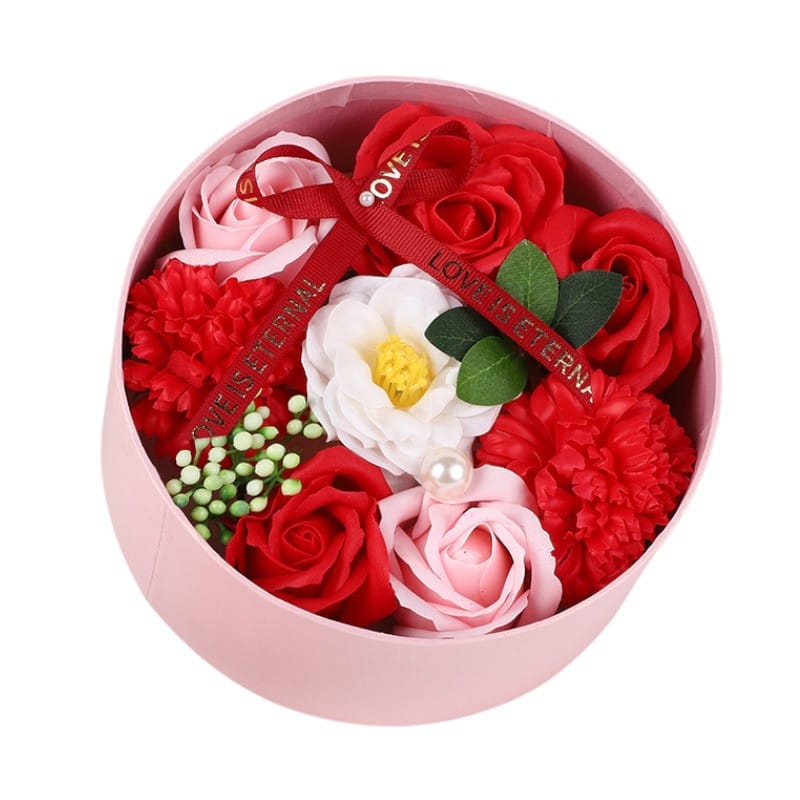 Bukiet kwiatów zapachowych kwiatów mydlanych w ozdobnym pudełku Subtelny i wyjątkowy prezent dla kobiety, idealny na wiele okazji.Bukiet kwiatów mydlanych jest umieszczony w ekskluzywnym opakowaniu, ozdobionym subtelnymi zdobieniami i kokardą.Gotowy do wręczenia jako prezent dla Twojej ukochanej osoby.Każda róża mydlana jest starannie wykonana, aby oddać piękno prawdziwego kwiatu. Materiał: kwiaty mydlane / opakowanie z tworzywa sztucznego. Wymiary pudełka:Średnica: 16cmWysokość: 8cm Waga produktu z pudełkiem: 150g