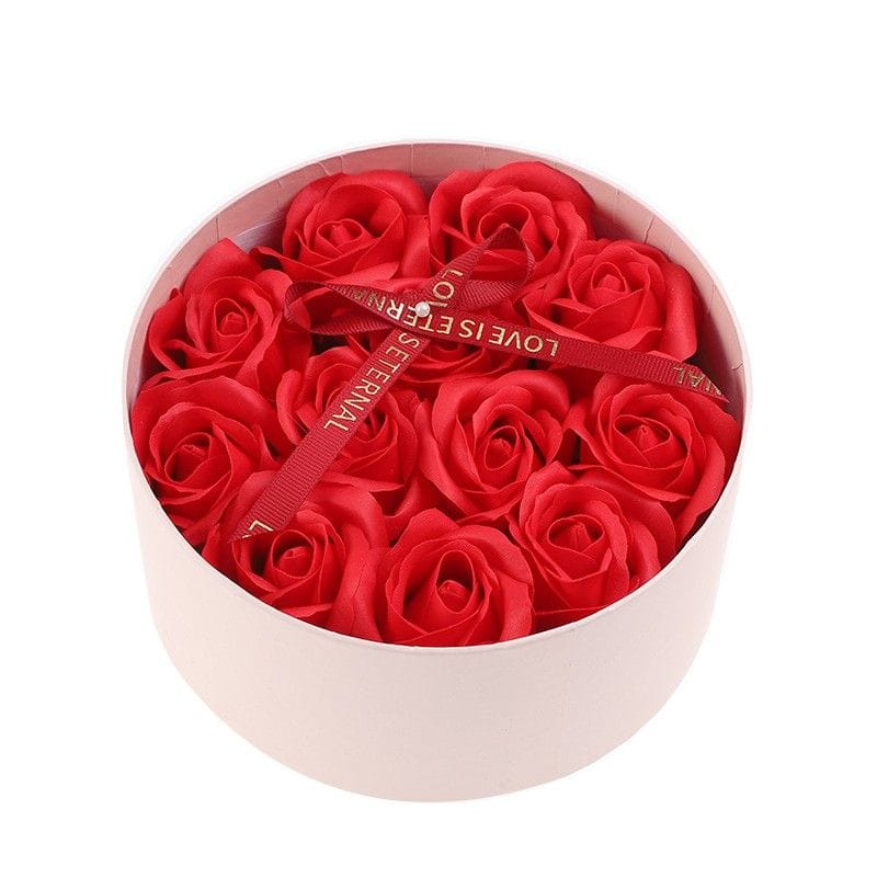 Bukiet zapachowych kwiatów mydlanych w ozdobnym pudełku, czerwone róże BUK26CZE