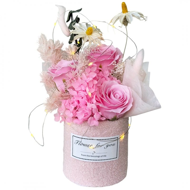 Bukiet zapachowych kwiatów mydlanych w pudełku na prezent, świecące LED BUK21