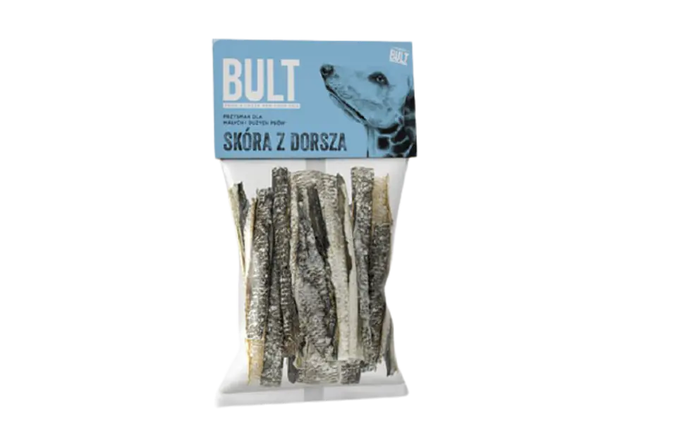 Skóra z dorsza marki BULT to doskonały przysmak dla psów z alergią pokarmową na drób i inne rodzaje mięsa. Intensywny zapach ryby kusi nawet najbardziej wymagające czworonogi.