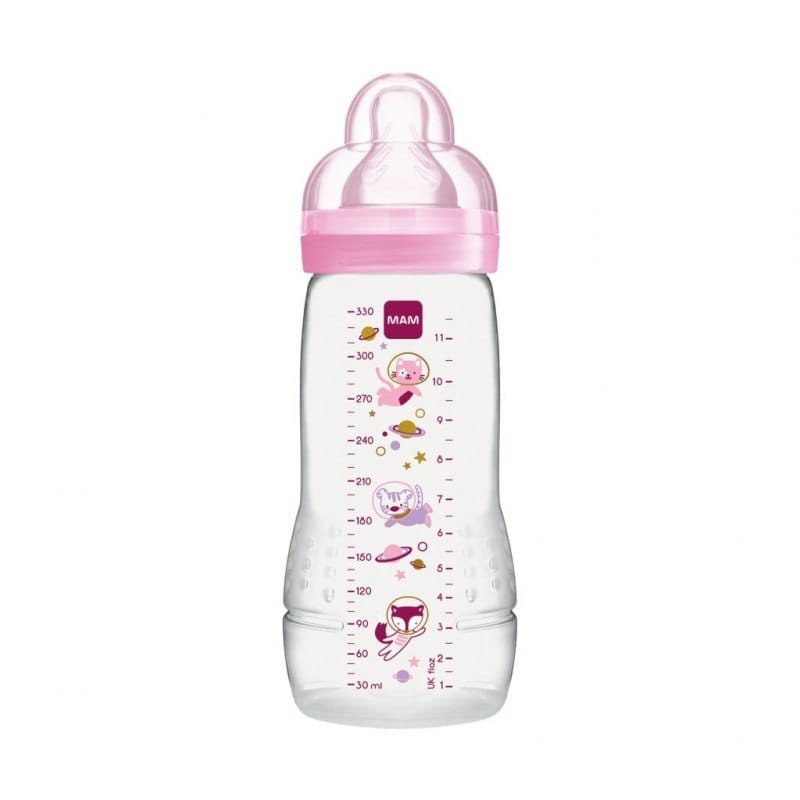Baby Bottle 330ml Space Adventure - Butelka dla niemowląt MAM Baby Bottle to idealna butelka do karmienia aktywnych niemowląt, ponieważ jest bardzo łatwa w użyciu. Cechy: -Ergonomiczny kształt - łatwa do trzymania w malutkich rączkach -Płaski, miękki smoczek - podczas karmienia przypomina pierś mamy -94% niemowląt akceptuje nasz smoczek do butelek 1 -Szeroki otwór ułatwiający napełnianie i mycie -Modne i zabawne wzory - wyraźna podziałka i stylowe motywy dla małych znawców mody Wiek: 4m+