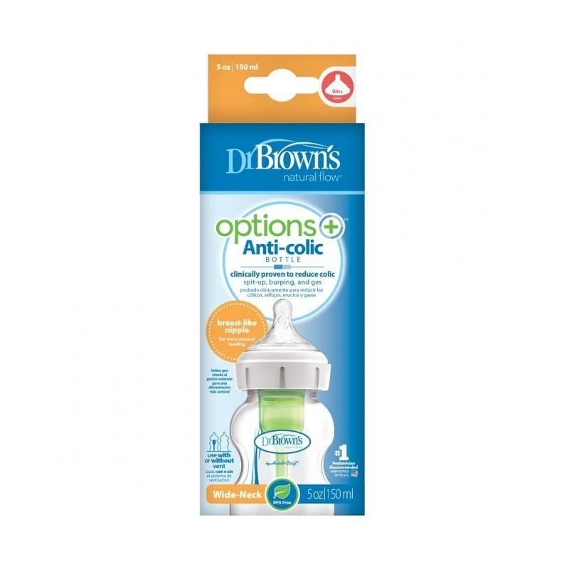 DB WB51600 Do użycia z systemem lub bez systemu odpowietrzającego. Najnowsze butelki Dr Brown s Options+ dają rodzicom możliwość wyboru, w jaki sposób chcą karmić swoje dziecko. Opatentowany system odpowietrzający pozwala na karmienie dziecka butelką Dr Brown s z systemem lub bez systemu odpowietrzającego. Butelka posiada nowy kształt smoczka, przypominający pierś matki. Podczas karmienia zalecamy używanie systemu odpowietrzającego Dr Brown s, aby dziecko doświadczyło wszystkich korzyści zdrowotnych: - system odpowietrzający nie dopuszcza do powstawania pęcherzyków powietrza w pokarmie, co zapobiega kolkom, odbijaniu i gromadzeniu gazów; - opatentowany system odpowietrzający skutecznie ogranicza utlenianie mleka matki i odżywki, co sprzyja trwałości niezbędnych składników odżywczych takich jak witamina C, A i E oraz lipidów (na podstawie badania uniwersyteckiego); - system pełnego odpowietrzenia butelki umożliwia karmienie bez powstawania próżni, podobne do karmienia piersią. Niektórzy rodzice uważają, że gdy dziecko jest starsze i bardziej rozwinięte, usunięcie systemu odpowietrzającego daje dodatkową opcję karmienia butelką Dr Brown s: - zapewnia karmienie podobne do większości butelek, które mają system odpowietrzający w smoczku; - system odpowietrzający w smoczku tworzy odpowiednią szybkość przepływu. ZESTAW ZAWIERA: - butelka 150ml szeroka szyjka OPTIONS+; - dwuczęściowy system odpowietrzający; - smoczek szeroka szyjka poziom 1; - szczoteczka do czyszczenia systemu odpowietrzającego.