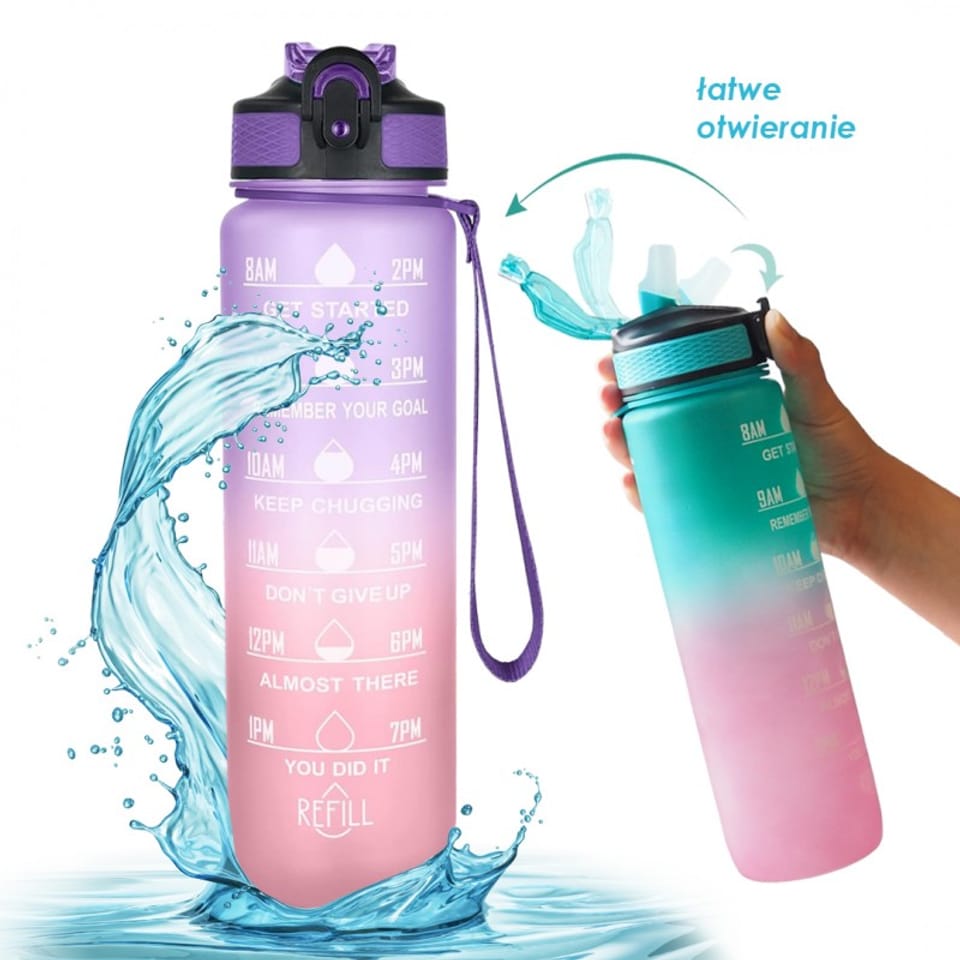 Butelka na wodę z miarką i słomką 1L OMBRE Fiolet z Koralem BD20