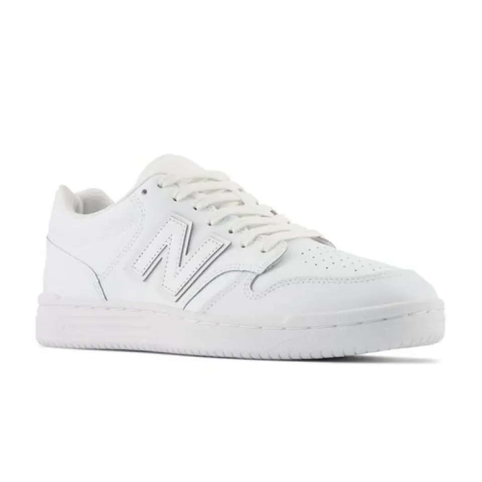 Białe buty New Balance z serii BB480 to inspirowane koszykarskimi klasykami sneakersy.