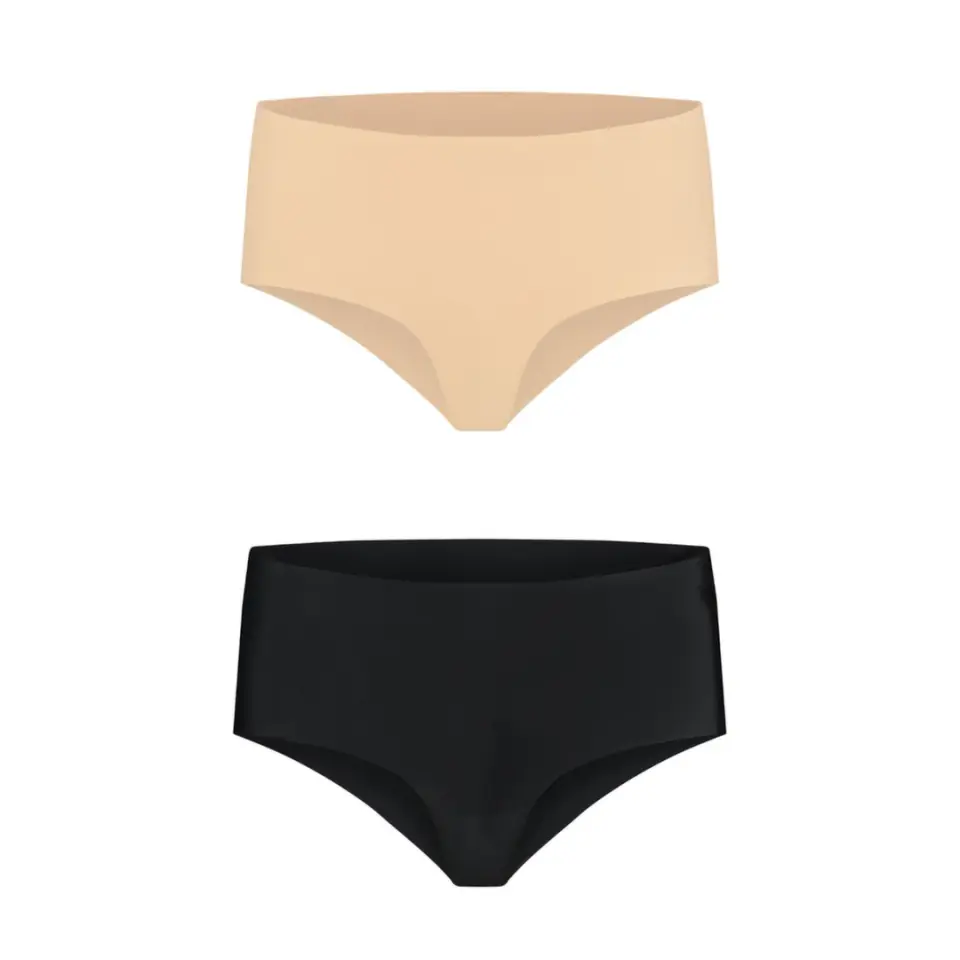 Bye Bra Invisible High Brief Nude + Black S to innowacyjne, bezszwowe majtki o wysokim stanie, stworzone z myślą o perfekcyjnym dopasowaniu do sylwetki i pełnej dyskrecji pod każdym strojem. Zestaw zawiera dwie sztuki w uniwersalnych kolorach: beżowym i czarnym, co pozwala na łatwe dopasowanie do rożnych stylizacji.