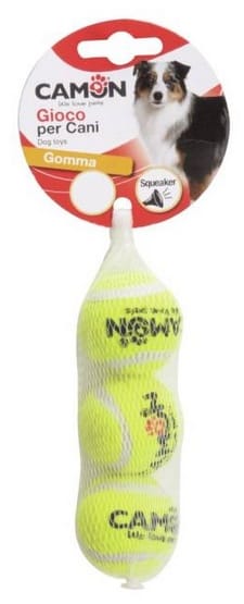 Camon Piłka tenisowa z dźwiękiemZabawka sprawi Twojemu pupilowi mnóstwo radości z zabawy. Pies nie będzie mógł się od niej oderwać i zapewni mu niezapomniane chwile. Piłki tenisowe wydają dźwięki dzięki piszczałce ukrytej wewnątrz. Dostępne w różnych rozmiarach, aby zaspokoić potrzeby każdego psa. Zabawka sprawi wiele przyjemności i zabawy Twojemu pieskowi. Doskonała do aportowania.