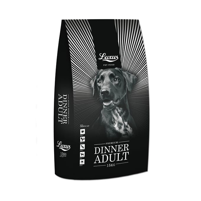 Canun Luxus Dinner Adult – pełnoporcjowa karma dla dorosłych psów wszystkich ras o umiarkowanej aktywności fizycznej. Bez GMO, z dużą zawartością mięsa i minerałami wspierającymi zdrowie każdego dnia.