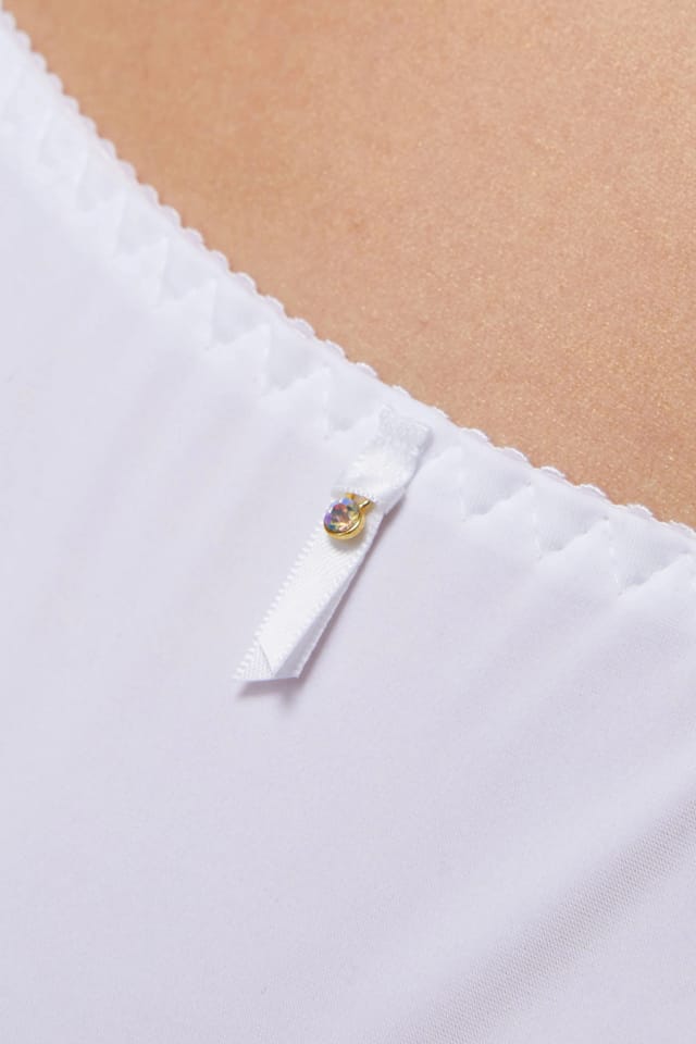 - Błyszcząca ozdoba na środku majtek,