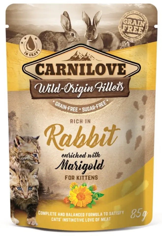 Carnilove Cat Rabbit & Marigold KittenZ królikiem z dodatkiem nagietka.Pełnoporcjowa karma w sosie dla kociąt