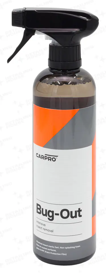 CarPro Bug Out to środek stworzony do bezpiecznego usuwania pozostałości owadów i zanieczyszczeń drogowych z nadwozi aut i motocykli. Produkt jest bezpieczny dla czyszczonych powierzchni.