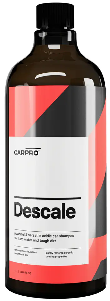 CarPro Descale – to kwaśny szampon samochodowy, który został stworzony z myślą o maksymalnej skuteczności podczas usuwania uporczywych zabrudzeń i śladów po twardej wodzie.
