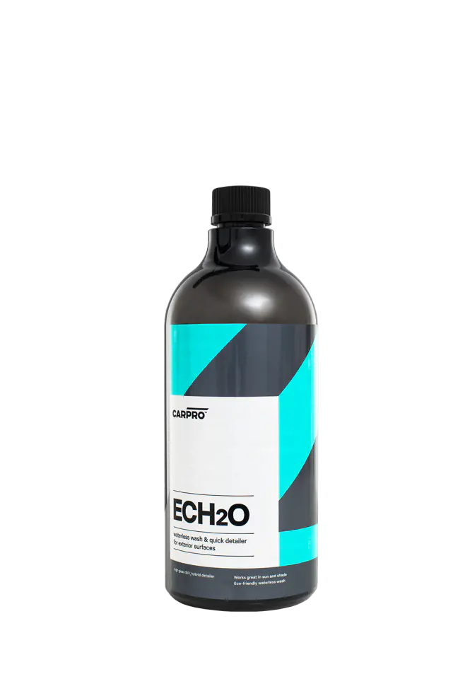 CarPro ECH2O – to efekt 2-letnich badań chemików CarPro, który może być stosowany jako produkt do bezwodnego mycia, quick detailer lub poślizg dla glinki. Produkt jest przeznaczony do stosowania z wcześniej nałożonymi powłokami kwarcowymi i ceramicznymi, woskami lub na niezabezpieczonych lakierach. Głównym składnikiem produktu jest SiO2, dzięki czemu z łatwością i bezpiecznie wyczyścimy, nabłyszczymy i zabezpieczymy powierzchnie na zewnątrz pojazdu.