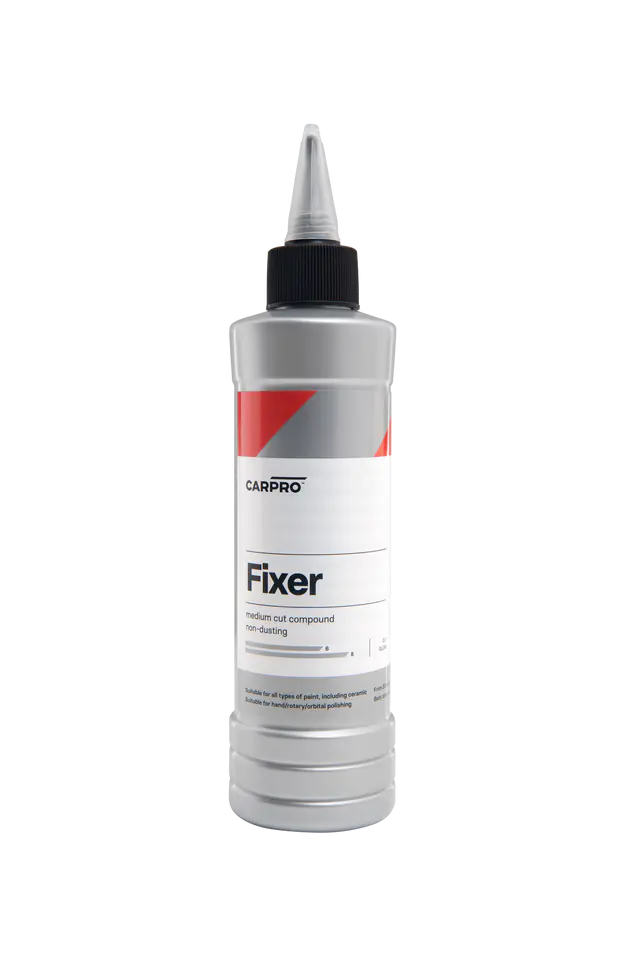 CarPro Fixer – to najbardziej wszechstronna średnio ścierna pasta polerska na rynku, przeznaczona do każdego typu lakierowanej powierzchni. Pozwala usunąć 80-95% lekkich i średnich defektów lakieru, a także ślady po papierze o gradacji P1500. Zapewnia idealne wykończenie lakieru w krótszym czasie niż pozostałe pasty dostępne na rynku.