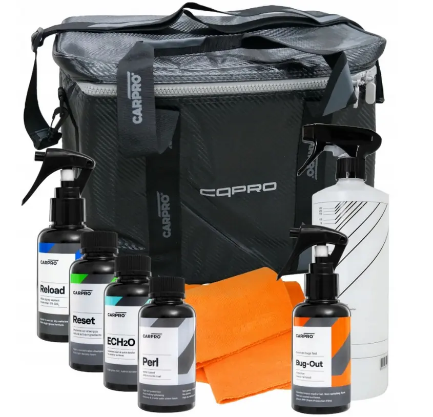 Do torby dołączone są próbki produktów CarPro, jest to idealny zestaw startowy dla klientów odbierających swój świeżo zabezpieczony samochód powłoką ochronną lub osób rozpoczynających swoją przygodę z auto detailingiem.