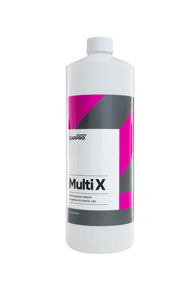 CarPro Multi X – wysoce skoncentrowany produkt o doskonałej sile czyszczenia, który posiada wszechstronne zastosowanie na praktycznie każdej powierzchni wewnątrz i na zewnątrz samochodu. Jest w pełni bezpieczny dla czyszczonych powierzchni, gdy jest używany zgodnie z zaleceniami. Produkt może być stosowany do mycia wstępnego, ale i również końcowego etapu mycia w celu dogłębnego oczyszczenia i usunięcia plam z zabezpieczonej powierzchni. Multi X posiada wspaniały cytrusowy zapach.