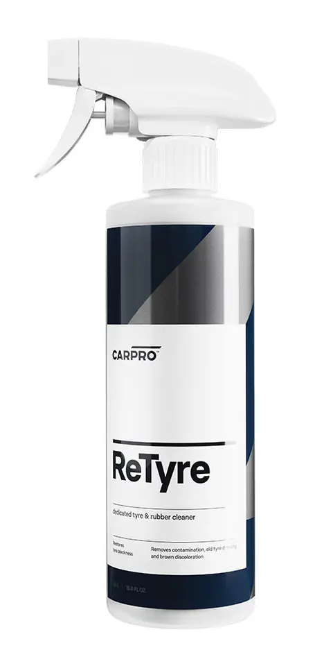 CarPro ReTyre – to produkt przeznaczony do łatwego czyszczenia opon z nagromadzonych dressingów, zanieczyszczeń drogowych i przeciwutleniaczy odpowiedzialnych za brązowienie. Zapewnia lśniący, czysty wygląd opony i przygotowuję ją do aplikacji CQuartz BlackOut, CarPro Perl lub ulubionego dressingu do opon.