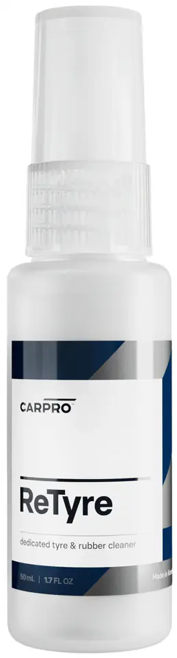 CarPro ReTyre – to produkt przeznaczony do łatwego czyszczenia opon z nagromadzonych dressingów, zanieczyszczeń drogowych i przeciwutleniaczy odpowiedzialnych za brązowienie. Zapewnia lśniący, czysty wygląd opony i przygotowuję ją do aplikacji CQuartz BlackOut, CarPro Perl lub ulubionego dressingu do opon.
