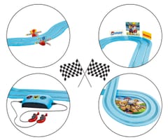 Zabawa z torami marki Carrera to połączenie wielkich emocji, prędkości i dobrej zabawy, która pochłonie dużych i małych. Każdy chłopiec i niejedna dziewczynka pokocha wyścigi. Dzięki torom poczują się jak prawdziwi rajdowi kierowcy. Carrera 1.FIRST to zestawy startowe do Świata Wyścigów Carrera.Nadzwyczaj pewny Siebie, uwielbiany strażak MARSHALL i jego wspaniały kolega z drużyny policjant CHASE którzy podbili serca młodych i starszych fanów kina na całym świecie. Filmy z tej serii PAW PATROL wytwórni Spin Master Entertainment i Nickelodeon Productions cieszą się niesłabnącą światową popularnością.Tor wyścigowy z samochodem MARSHALL i samochodem CHASE jest już dostępny do zabawy w dziecięcym pokoju. Carrera przy stworzeniu tego produktu szczególną uwagę położyła na odtworzenie wszystkich detali i oryginalnych postaci z filmu. Strażak MARSHALL i policjant CHASE mogą się ścigać zderzak w zderzak podczas wyścigów w super szybkim tempie.Bohaterowie filmu na torze wyścigowym już dostępni dla Twojego dziecka!Tor wyścigowy ma długość 2,4 metra i jest bardzo łatwy do złożenia i demontażu, co zawdzięcza unikalnemu systemowi zatrzasków łączących. Carrera FIRST zawiera 2 samochody wyścigowe, tor i dwa kontrolery prędkości. Kontrolery są idealnie dopasowane do małych dziecięcych rączek. Z zestawem Carrera FIRST – nawet najmłodsi zawodnicy mogą zostać kierowcami wyścigowymi!Każdy tor Carrera 1.FIRST można dowolnie rozbudować dodatkowymi elementami, jak również zamieniać samochody na inne w danej skali.Uwaga! Torów nie należy ustawiać na miękkim podłożu (tj. dywan, wykładzina).CHARAKTERYSTYKA PRODUKTU: