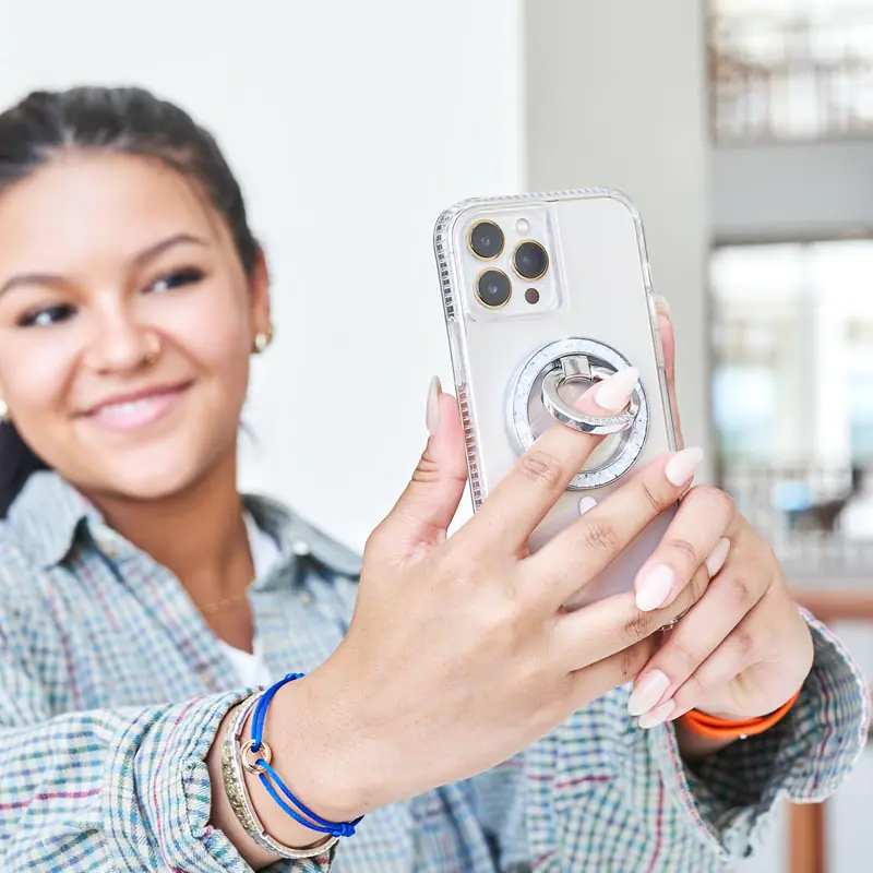 Uchwyt Case-Mate Magnetic Ring Stand przyczepia się bezpośrednio na etui lub urządzeniu kompatybilnym z MagSafe®. Idealny do użycia jako uchwyt lub podstawka podczas oglądania filmów, robienia selfie, pisania SMS-ów lub po prostu trzymania telefonu - ten dodatek pozwoli Ci zrobić więcej.Pierścień charakteryzuje się możliwością wygodnego dostosowania go do dłoni w zakresie 360 stopni.Cechy produktu:· Wykonany ze stali nierdzewnej· Silne wbudowane magnesy współpracują z MagSafe®· Obracany o 360°· Ergonomiczna konstrukcja pozwala na wygodne przenoszenie lub wykonanie selfie· Pełni funkcję stabilnej podstawki do telefonu