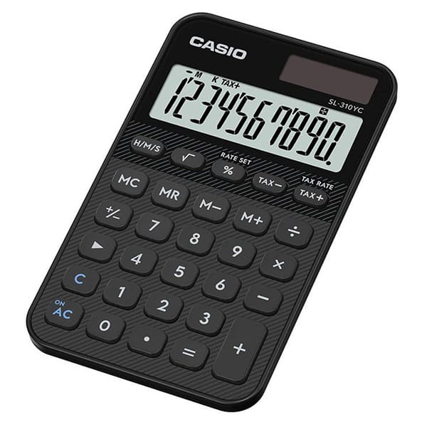 Casio Kalkulator SL 310 UC BK to sprzęt idealny dla osób, które chcą wyrazić swój styl nawet w pracy, umożliwia to miękki futerał sprzętu. Prosta budowa w której zostały umieszczone liczne funkcje, które będą pomocne w szybkich wyliczeniach. Dzięki wymiarom 8x70x118 mm i wadze zaledwie 50 gramów, sprawdzi się jako kalkulator kieszonkowy. Zasilany jest jedną baterią LR54. Posiada 4 pamięci, dodatkowym atutem urządzenia jest 10-pozycyjny wyświetlacz LCD, dzięki któremu odczytywanie wyników nie sprawi trudności. Może obliczyć procent, łącznie z marżą zysku, podatek VAT, poradzi sobie też z obliczeniem pierwiastka kwadratowego. Kalkulator przelicza prędkość podaną w kilometrach na godzinę (km/h) na metry na sekundę (m/s) lub na mile na godzinę(mph). Posiada dwa źródła zasilania - poprzez baterie i energie słoneczną. Model dostępny w kolorze czarnym.