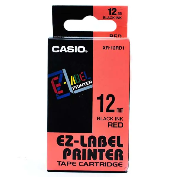 Casio oryginalny taśma do drukarek etykiet, Casio, XR-12RD1, czarny druk/czerwony podkład, nielaminowany, 8m, 12mm