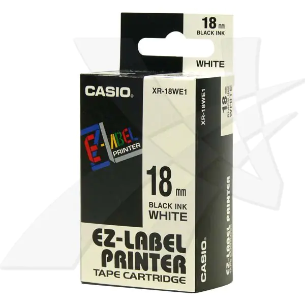 Casio oryginalny taśma do drukarek etykiet, Casio, XR-18WE1, czarny druk/biały podkład, nielaminowany, 8m, 18mm