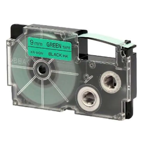 Casio oryginalny taśma do drukarek etykiet, Casio, XR-9GN1, czarny druk/zielony podkład, nielaminowany, 8m, 9mm