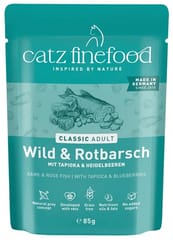 Specjał dla kotów – wartościowa karma dla naszych pupili. Catz finefood N°21 zawiera dużo delikatnej dziczyzny, karmazynu oraz wartościowe dodatki, jak borówka czarna i szałwia. Bez konserwantów, barwników i wzmacniaczy smaku. Nie zawiera GMO. Mmmmiau!Skład:dziczyzna 50% (w tym mięso, serce, płuco, wątroba), bulion z dziczyzny i karmazyna 23,6%, karmazyn 20%, ziemniak 3%, borówka 2%, minerały 1%, szałwia 0,2%, olej z ogórecznika lekarskiego 0,2%Składniki analityczne:białko surowe 10,5%, zawartość tłuszczu 6,3%, popiół surowy 2,8%, włókno surowe 0,4%, wilgotność 77%Dodatki dietetyczne na kg: tauryna 1500 mg, cynk 25 mg, mangan 1,4 mg, miedź 0,5 mg, jod 0,75 mgZalecana dzienna ilość/zapotrzebowanie:Dzienna porcja powinna wynosić ok. 3-5% masy ciała.