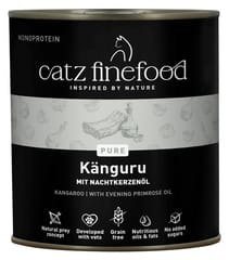 Skład:Kangur 70% (mięso mięśniowe 5%), bulion z kangura 28,8%, minerały 1%, olej z wiesiołka 0,2%Składniki analityczne:Wilgotność 79%, białko surowe 11,5%, zawartość tłuszczu 3,5%, popiół surowy 2,6%, włókno surowe 0,4%Dodatki dietetyczne na kg:Witamina D3 200 I.E., tauryna 1500 mg, cynk 25 mg, mangan 1,4 mg, jod 0,75 mgZalecana dzienna ilość/zapotrzebowanie:Dzienna porcja powinna wynosić ok. 3,7-7% masy ciała.