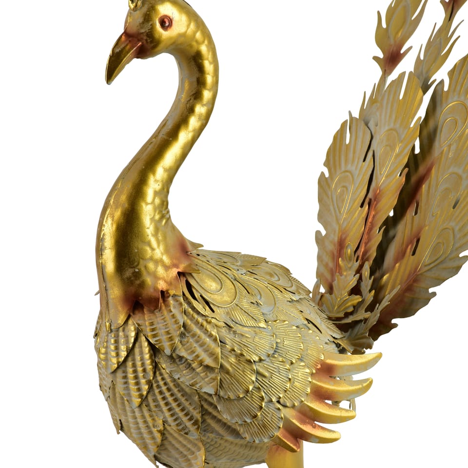CEDRIC. Metalowa Figura PAW 583953 cm (pióra do góry) Dekoracyjna metalowa figura pawia marki CEDRIC to efektowny akcent, który wnosi do przestrzeni ogrodowej elegancję i wyrazisty charakter. Paw z uniesionymi piórami prezentuje się niezwykle dynamicznie i dekoracyjnie, symbolizując piękno, dumę i harmonię natury. Figura została wykonana z metalu i utrzymana w złotej kolorystyce, dziękiczemu doskonale komponuje się z roślinnością ogrodu, tarasu czy balkonu. Starannieopracowane detale piór nadają dekoracji lekkości oraz artystycznego wyrazu, czyniąc ją atrakcyjną ozdobą przestrzeni zewnętrznych, jak i zadaszonych wnętrz.Dzięki wymiarom 583953 cm paw jest dobrze widoczny, a jednocześnie nie przytłacza aranżacji. Idealnie sprawdzi się jako dekoracja ogrodu lub tarasu, ustawiona wśród zieleni lub jako centralny element kompozycji. Wskazówka użytkowa: Aby zachować estetyczny wygląd figury na dłużej, nie zaleca się pozostawiania pawia na zewnątrz w okresie zimowym. Na czas mrozów najlepiej przenieść dekorację do suchego, zadaszonego miejsca.CEDRIC PAW to połączenie metalowej trwałości, naturalnej kolorystyki i dekoracyjnej formy, które podkreśli charakter każdej przestrzeni wypoczynkowej.