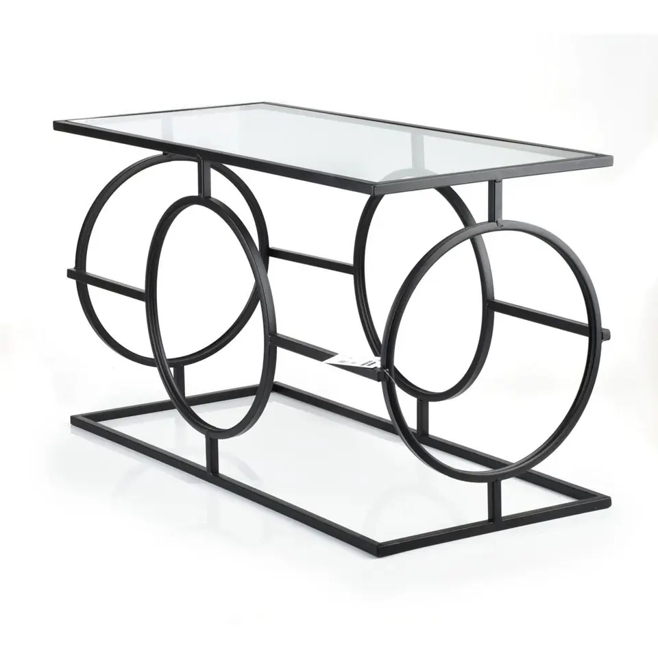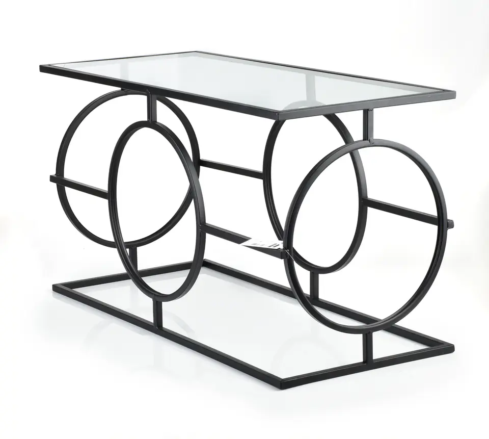 Metalowy stół z serii CEDRIC marki Mondex. Stolik wykonany został z metalu ze szklanym blatem. Stolik doskonale odnajdzie się w industrialnych oraz nowoczesnych wnętrzach wnosząc elegancję i styl. Wymiary : Długość: 80.00 Szerokość: 35.50 Wysokość: 45.00