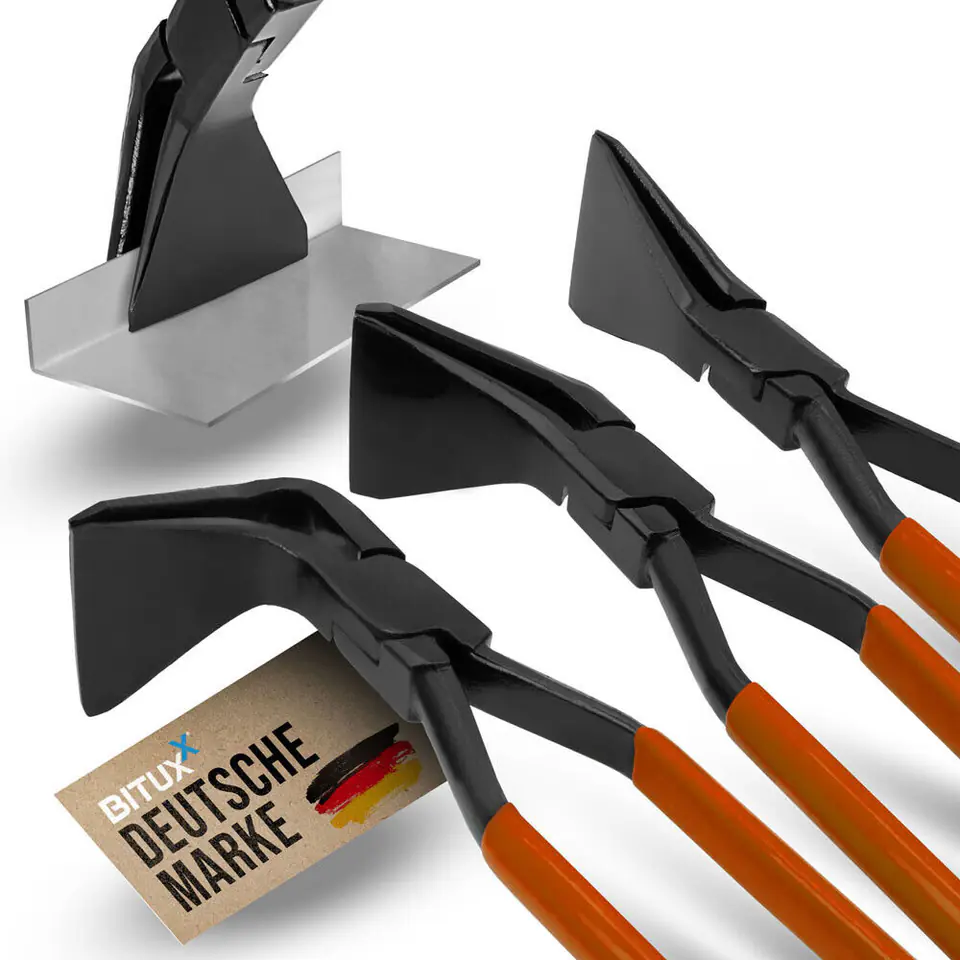 Zestaw 3 cęgów dekarskich wykonanych z wysokiej jakości stali narzędziowej. Rączka pokryta okładziną PCV antypoślizgową, która znacznie ułatwia pracę.Pozwalają na precyzyjne ręczne kształtowanie oraz gięcie profili aluminiowych i blach.