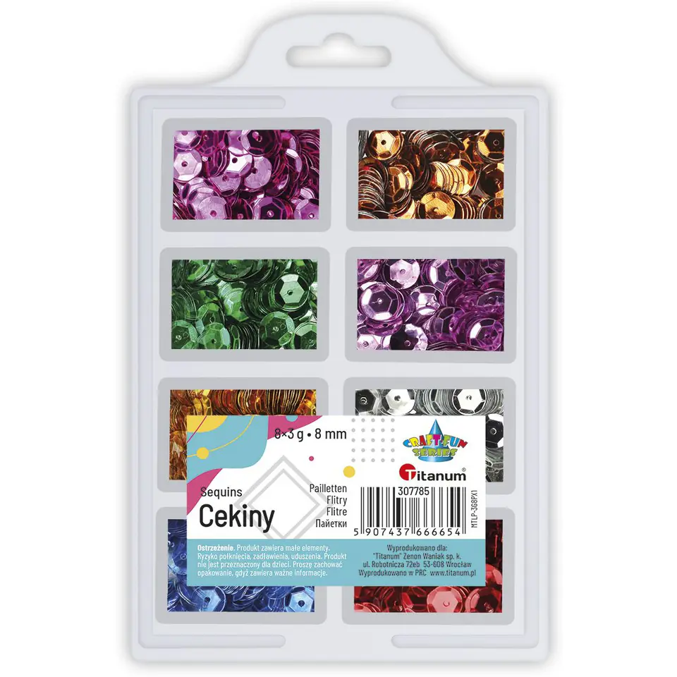 Cekiny metaliczne 8 kol.x3g śr.7mm 307785 TITANUM
