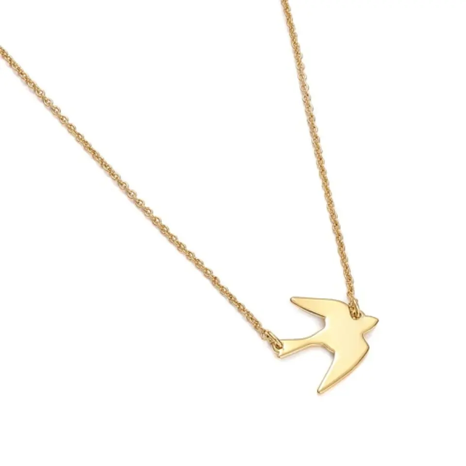 Jedna jaskółka wiosny nie czyni... ale biżuteria z jaskółką z pewnością daje radość i jest doskonałym dodatkiem do wielu stylizacji. Długość łańcuszka 40cm + 8cm przedłużki. Wymiary jaskółki 1,5cm x 1,5cm. Celebrytka pozłacana.
