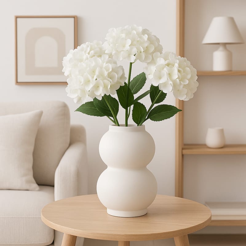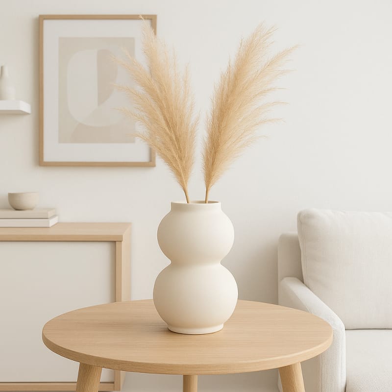Ceramiczny wazon w stylu minimalistycznym w pudełkuMinimalistyczny wazon ceramiczny — elegancka dekoracja w ponadczasowej bieli.Wykonany z matowej ceramiki, o nowoczesnym, organicznym kształcie.Doskonały do świeżych kwiatów, suszonych roślin lub jako samodzielna ozdoba wnętrza. Wymiary:20,5 × 13,5 cm, otwór 6,4 cm Wymiary opakowania:21cm x 14cm x 14cm Waga:1086g netto / 1150g brutto Materiał:biała ceramika
