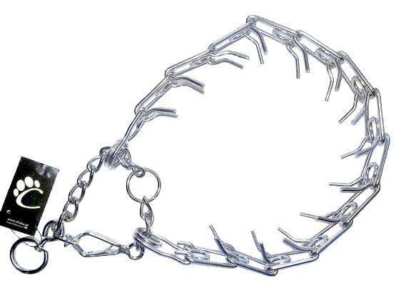 Popularna obroża typu "kolczatka", o budowie łańcuszka, którego ogniwa zakończone są wystającymi, tępo zakończonymi końcami drutu.Kolce ustawione są pod takim kątem, by nie wbijać się w skórę, a jedynie "uwierać" nieposłusznego psiaka podczas gdy ciągnie na smyczy.Oba końce właściwej obroży połączone są dodatkowo łańcuszkiem zaciskowym potęgującym efekt szkoleniowy.Obroża może być zakładana na szyję psa zarówno ostrymi elementami do wewnątrz jak i na zewnątrz (spełnia wtedy funkcję zwyczajnej obroży zaciskowej).Zadaniem kolczatki założonej ostrą stroną do wewnątrz jest zadanie dyskomfortu zwierzęciu w momencie szarpnięcia smyczą.Szarpnięcia może dokonać sam pies na skutek gwałtownych ruchów naciągających smycz, jak i właściciel prowadzący zwierzę.Produkt wykonany w całości ze stali chromowanej.Możliwość regulacji poprzez odejmowanie i dodawanie oczek kolczatki.Tabela rozmiarów