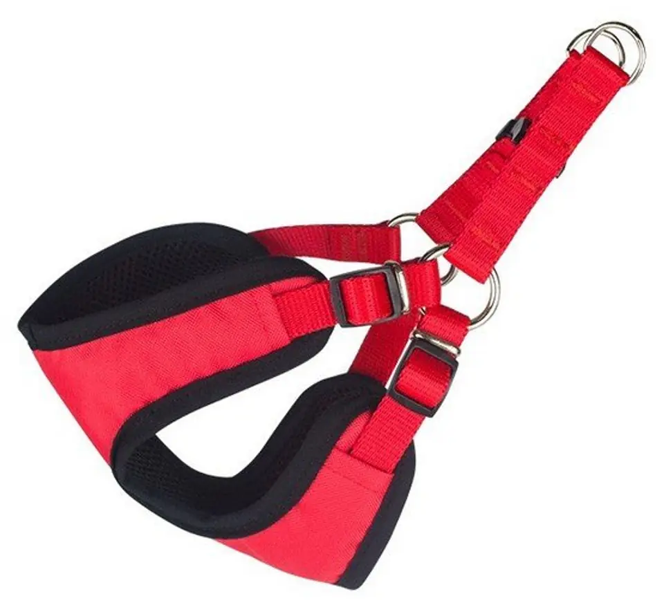 - Sposób regulacji: klamra plastikowa, która pozwala na szybkie i idealne dopasowanie obwodu szelek do rozmiaru zwierzęcia.