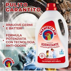 Chanteclair Lavatrice Igienizzante to dezynfekujący detergent do pralki, który skutecznie usuwa uporczywe plamy, zarazki i bakterie, zapewniając higienicznie czyste pranie dla całej rodziny. Skoncentrowana formuła działa efektywnie nawet w niskich temperaturach, co pozwala oszczędzać energię bez utraty skuteczności.