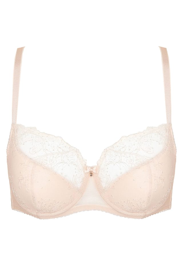 - Dolna część misek wykonana z cienkiej pianki gorseciarskiej powleczonej haftem, a górna z kwiatowego haftu, dzięki czemu biustonosz doskonale dopasowuje się do kształtu piersi,