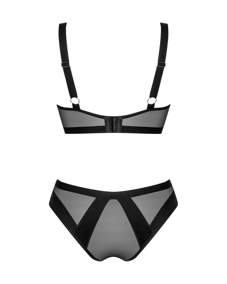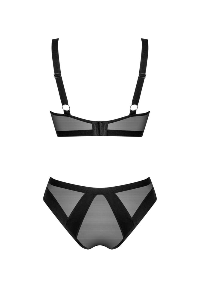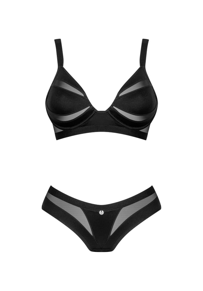 Czy seksowna bielizna może być wygodna? Jeszcze jak! Ten komplet jest tego dowodem, ale to nie wszystko, na co go stać. Bez względu na to, czy założysz go na spotkanie z przyjaciółkami, czy na gorącą randkę, zawsze będziesz czuła się pewnie i zmysłowo. Poznaj więcej szczegółów:- biustonosz i figi w czarnym kolorze- kilkustopniowe zapięcie i regulowane ramiączka – gwarancja idealnego dopasowania- subtelne fiszbiny – wyeksponują biust- połyskująca zawieszka – elegancki detal- zaskakująco połączone przyjemne w dotyku materiały – zadbają o Twoją wygodę (94% polyamide, 6% elastane)