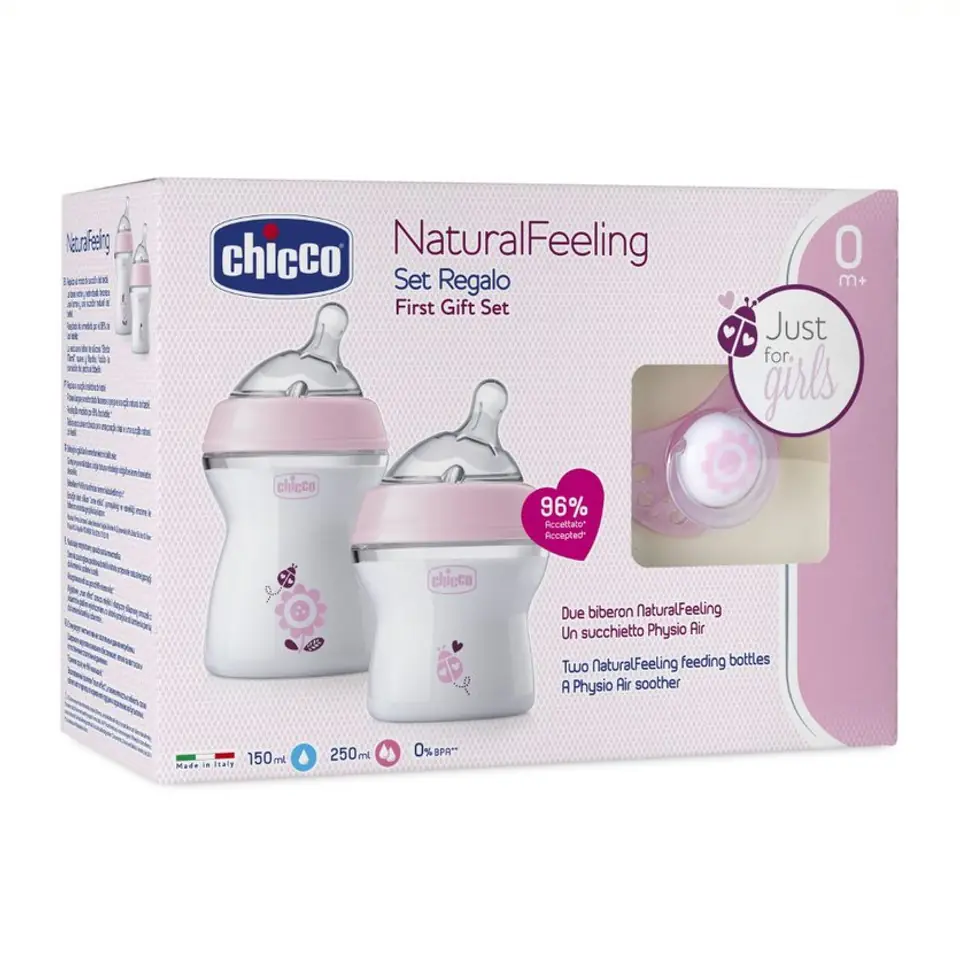 Chicco NaturalFeeling zestaw do karmienia butelka 150ml 0m+ + butelka 250ml 2m+ + smoczek PhysioForma Comfort 0m+ Różowy (P1)8058664153671Zestaw podarunkowy do karmienia Chicco ze smoczkiem Physio Micro, zawiera kultowe produkty marki, zebrane z myślą o jak najlepszym przygotowaniu się na powitanie noworodka. W skład zestawu wchodzą 2 butelki z linii NaturalFeeling o pojemności 150 i 250 ml o przepływie normalnym, które podążają za naturalnym sposobem ssania dziecka i ułatwiają karmienie naprzemienne, oraz ortodontyczny smoczek Physio Micro, idealny dla noworodków i dzieci o niskiej wadze urodzeniowej, w rozmiarze 0-2m, wspomagający prawidłowy rozwój jamy ustnej.Zestawy dostępne są w dwóch liniach kolorystycznych: różowej i niebieskiej oraz posiadają unikalne dekory dostępne tylko w zestawie podarunkowym.