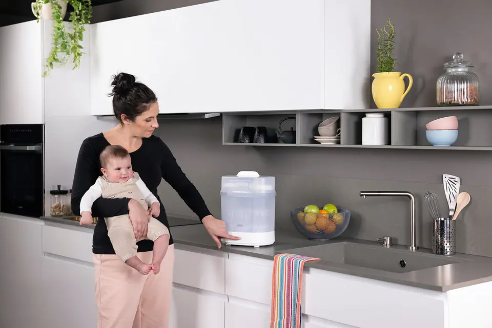 Niewielki rozmiar i smukły kształt sterylizatora, a także jego stonowana kolorystyka, pozwolą dopasować i użytkować produkt w każdej kuchni.
