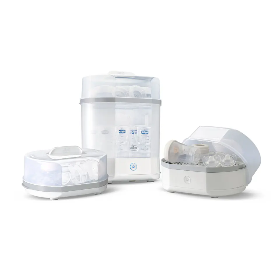 Nowa linia sterylizatorów Chicco odpowiada na potrzeby mamy i dziecka. Sterylizator 3w1 to urządzenie proste w użyciu, dostosowujące się do sytuacji i potrzeb - pozwala na wykorzystanie całej przestrzeni sterylizatora, bądź jedynie jego kompaktowej wersji, a także posiada dodatkowy pojemnik do sterylizacji w kuchence mikrofalowej.