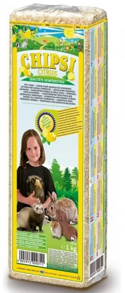 Trociny JRS CHIPSI Citrus - z aromatem cytrynowym.Idealne na ściółkę dla gryzoni lub małych ssaków.Charakterystyka:
