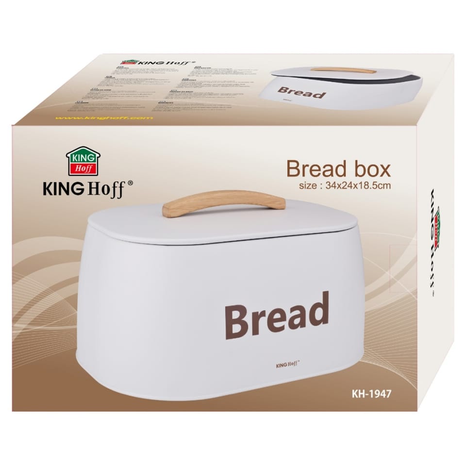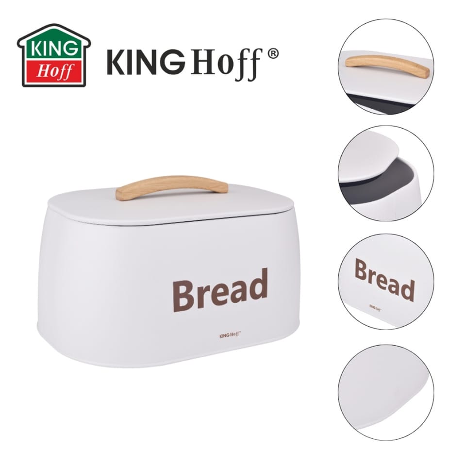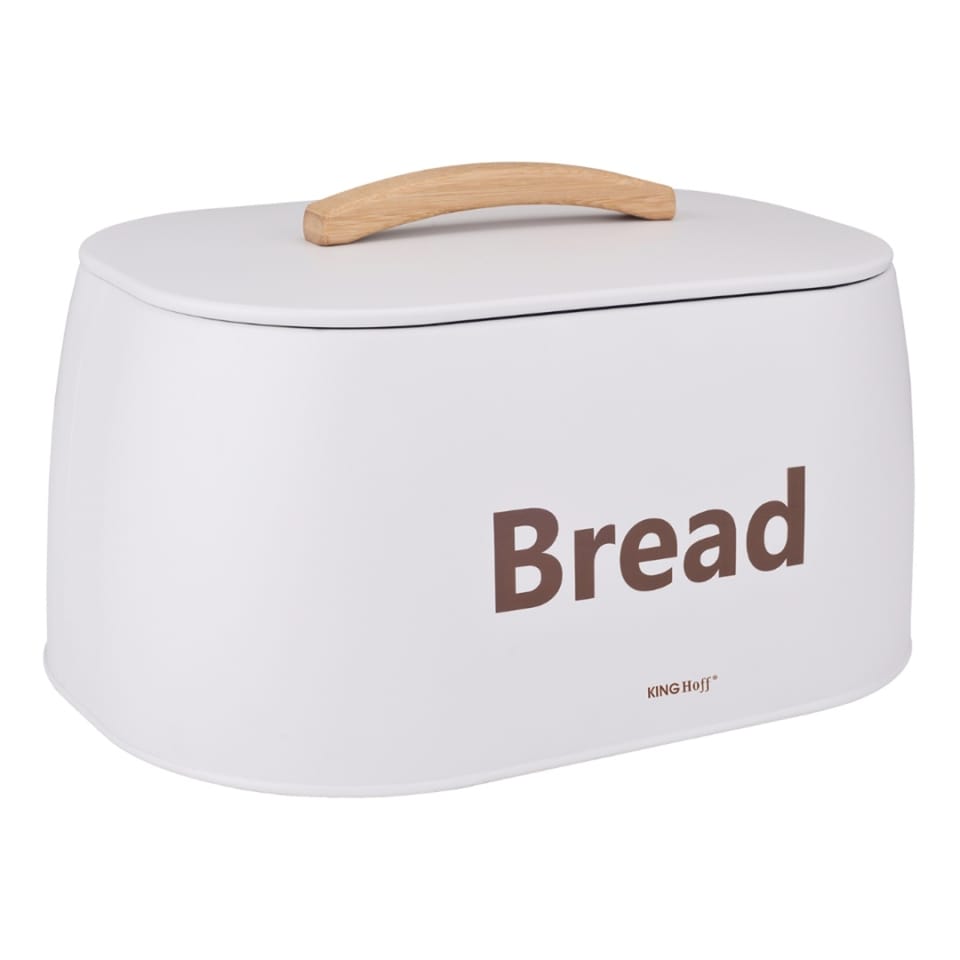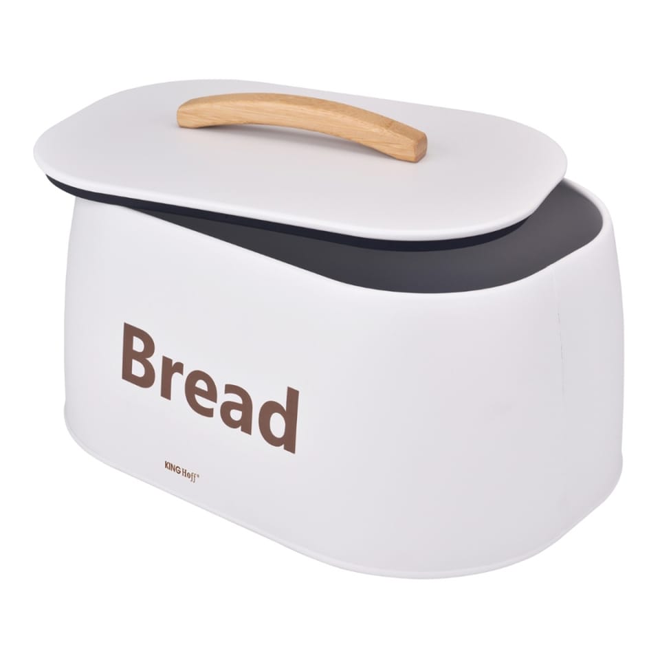 Chlebak metalowy biały z drewnianym uchwytem KINGHOFF KH-1947 – styl i porządek w kuchni