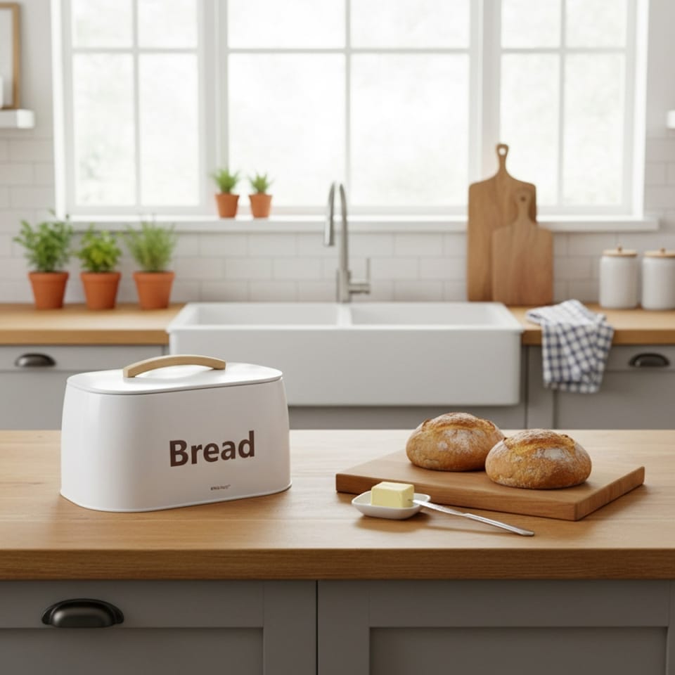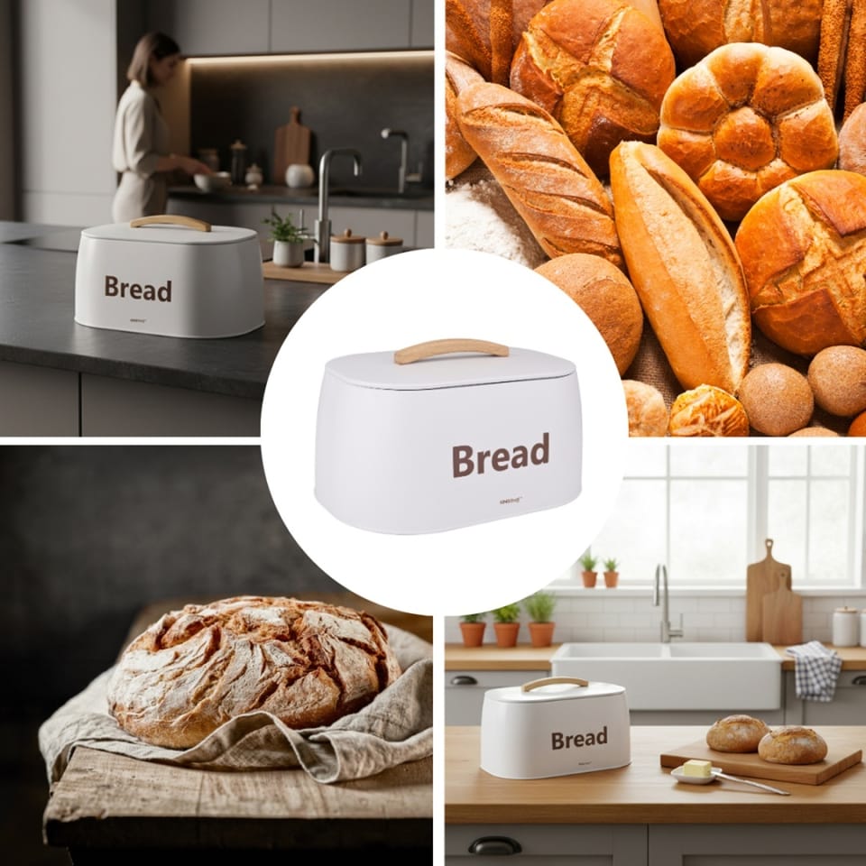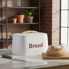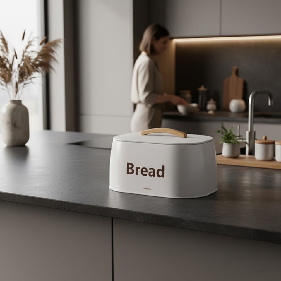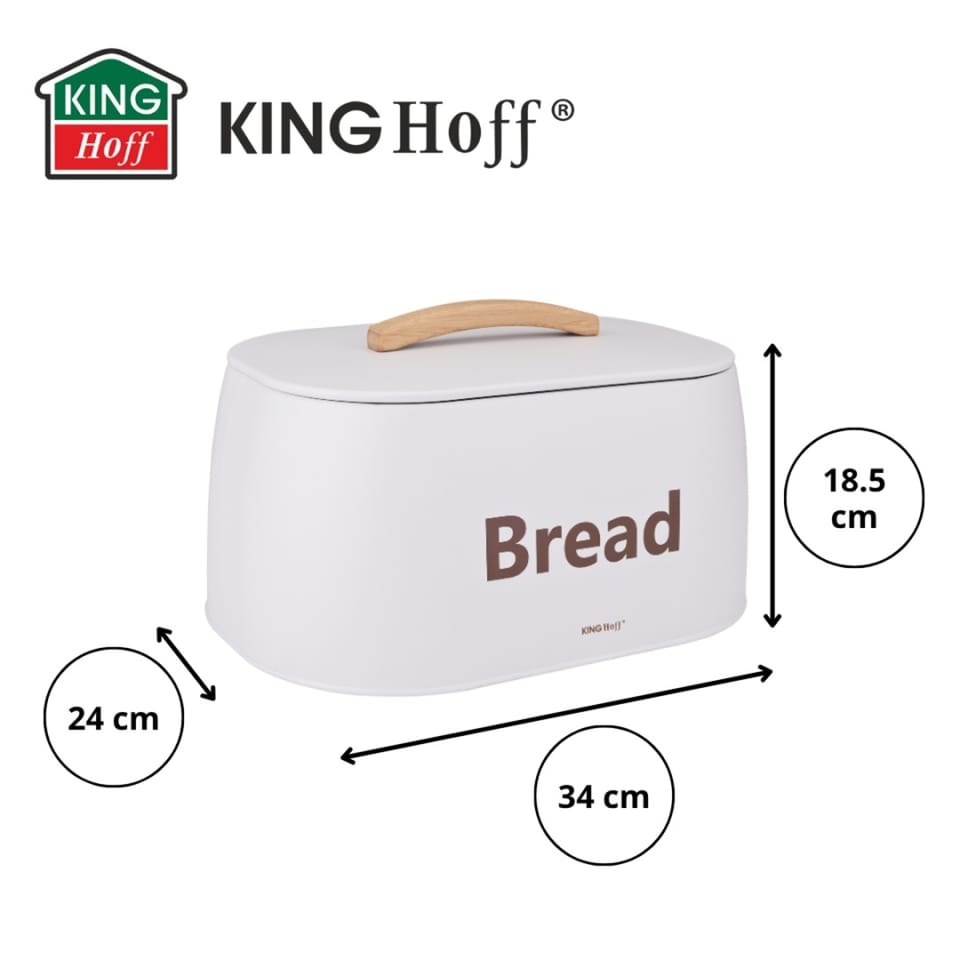 Chlebak metalowy biały z drewnianym uchwytem KINGHOFF KH-1947 – styl i porządek w kuchni